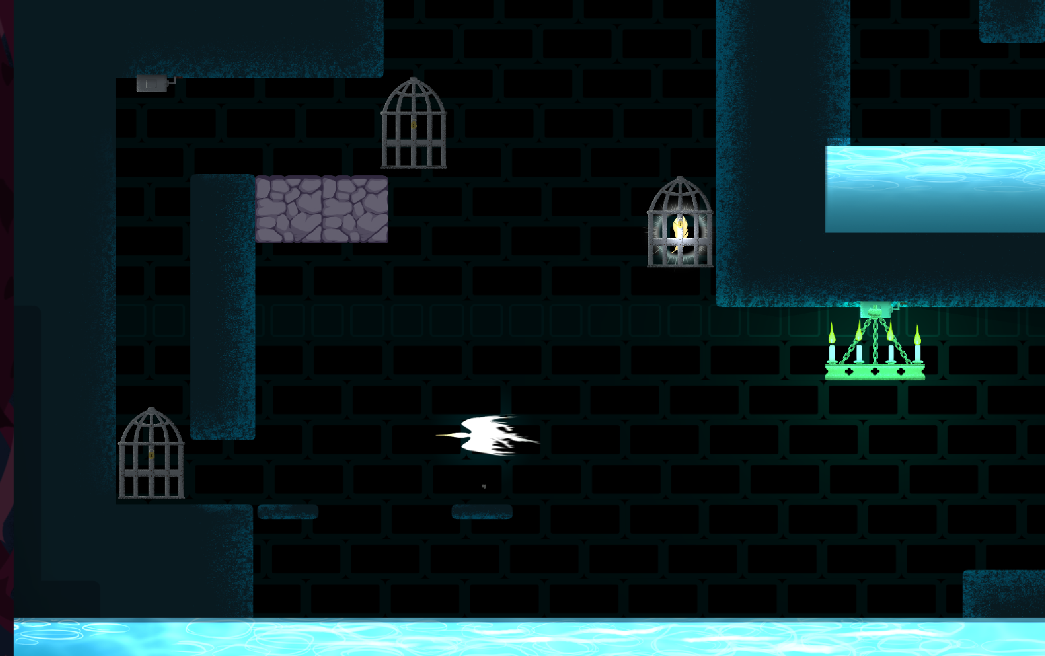 Throw feathers to lower Chandeliers and open hatches